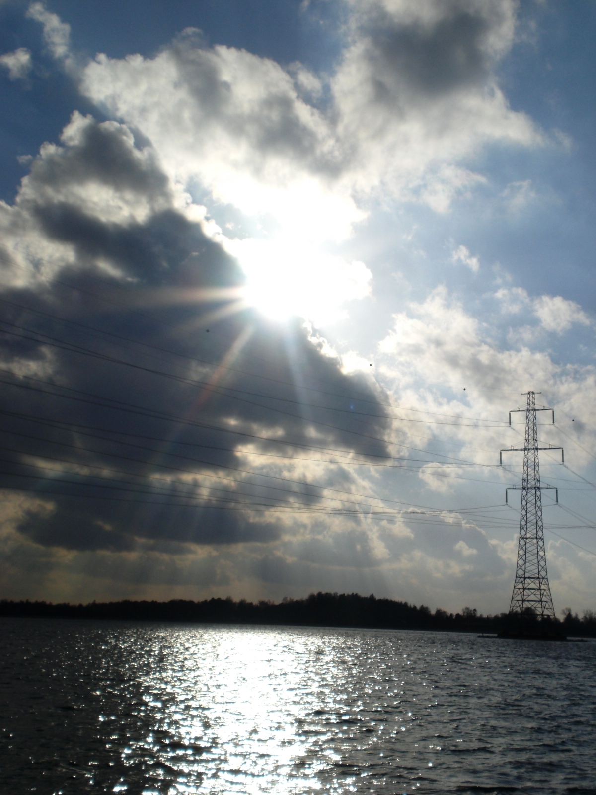 Die andere Seite des Fjords wird über den Fjord hinweg mit Strom versorgt: