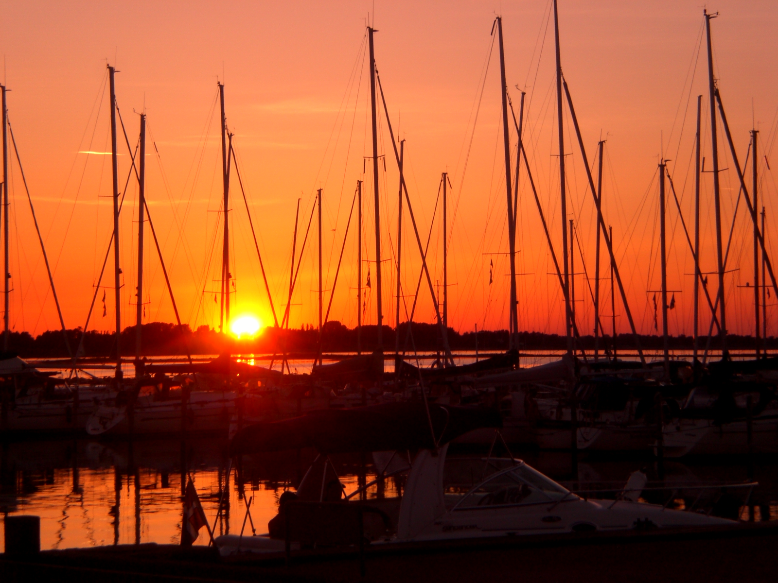 Sieht ja toll aus der Yachthafen. Vor allem der Sonnenunterganz ist schön. Klasse Fotos mit der roten Sonne im Hintergrund und den vielen Masten von den Schiffen.
