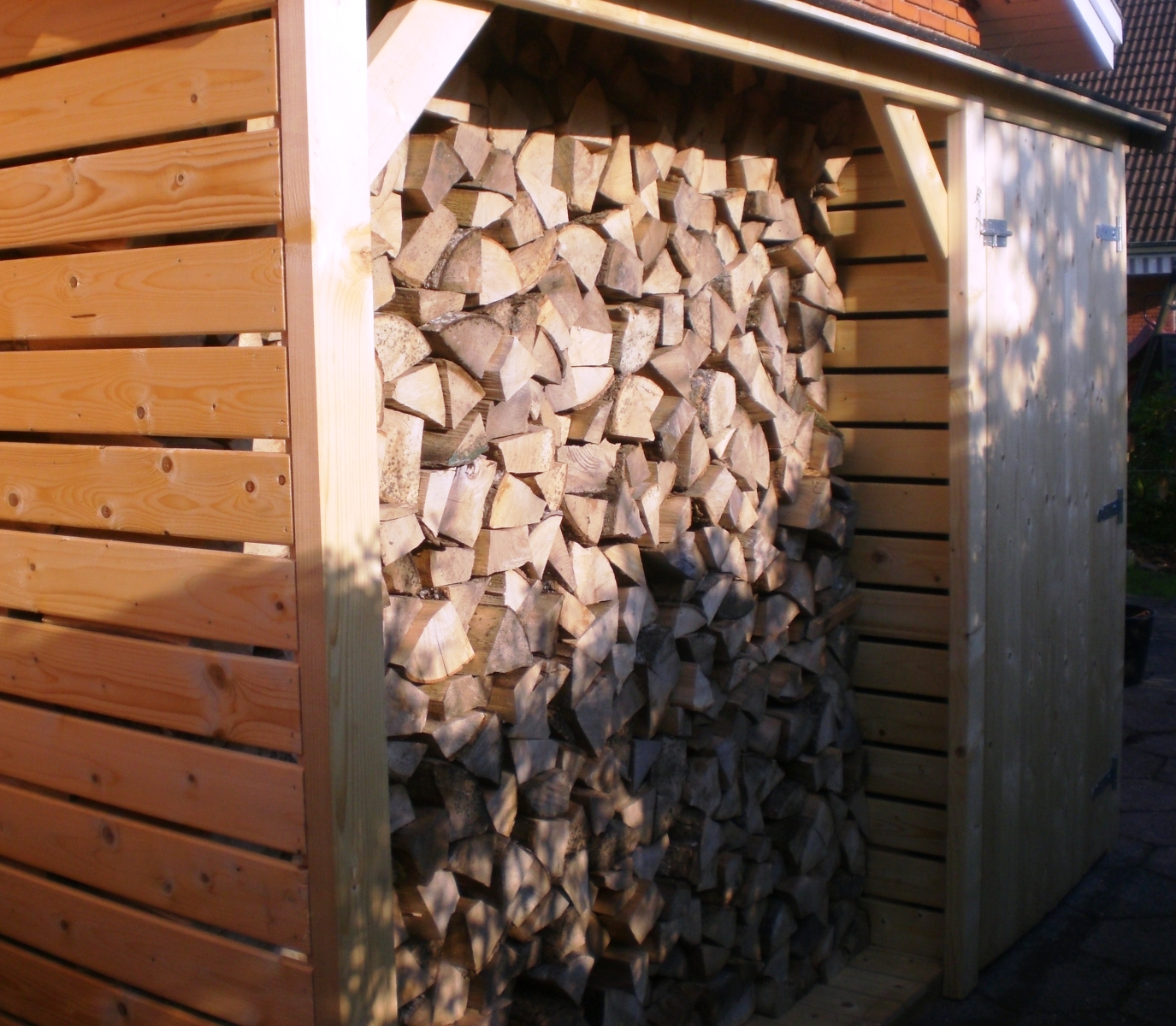 Am vergangenen Wochenende haben wir in einer „Gewaltaktion“ den neuen Schuppen aufgebaut und zweieinhalb „Türme“ Feuerholz eingelagert.