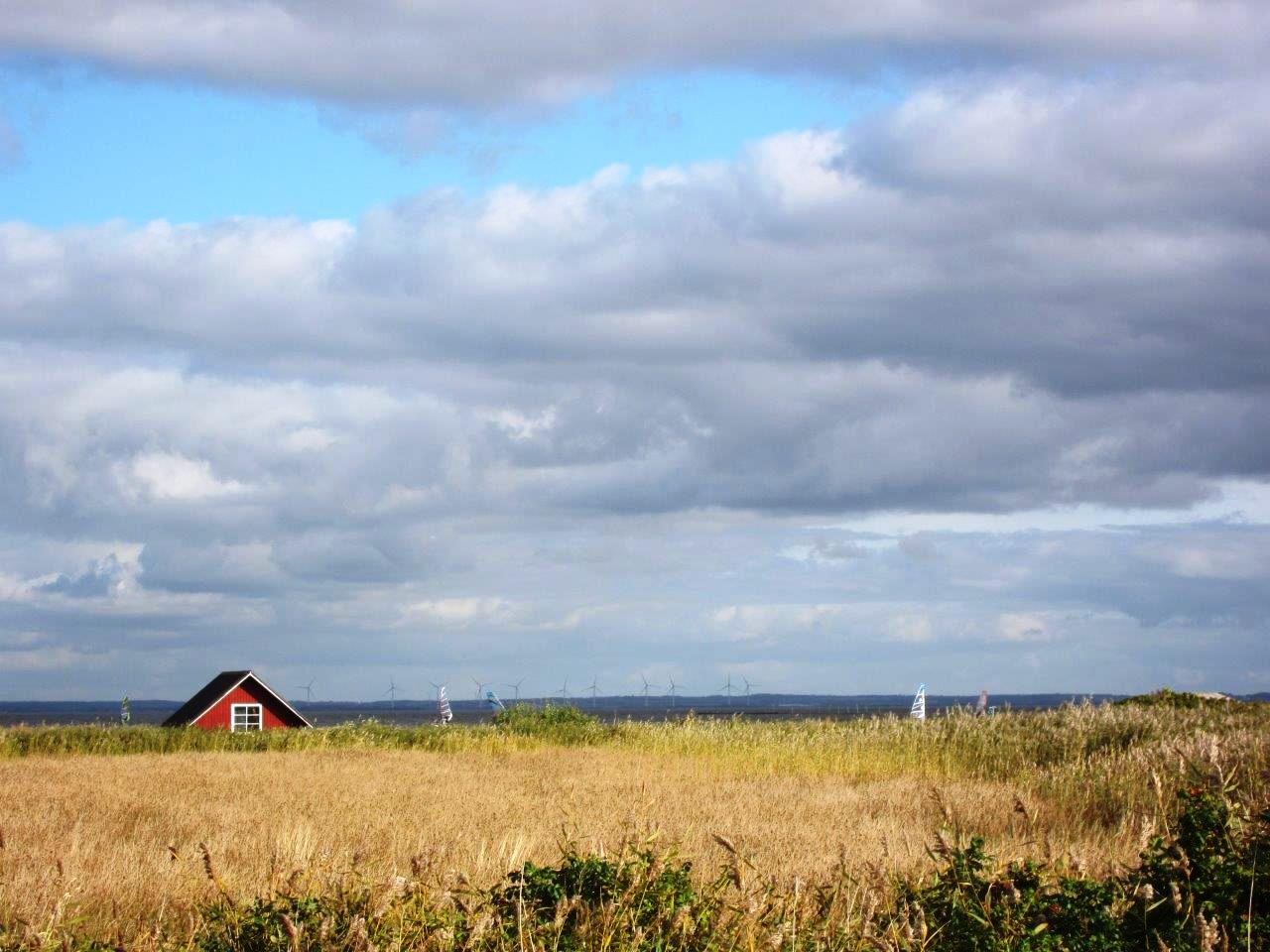 Årgab liegt auf der schmalsten Stelle von Holmsland Klit, dem schmalen Landstreifen zwischen Meer und Fjord. Hier sind es vom Ringkøbing Fjord zur Nordsee nur 500 Meter! Und unser Ferienhaus liegt mittendrin in der hügeligen Dünenlandschaft, 200 Meter vom Strand entfernt. Nach Adam Riese müssten es somit ungefähr 300 Meter zum Fjord sein. Was Spaziergänge am Wasser angeht, haben wir in einer Woche also die Qual der Wahl 🙂
