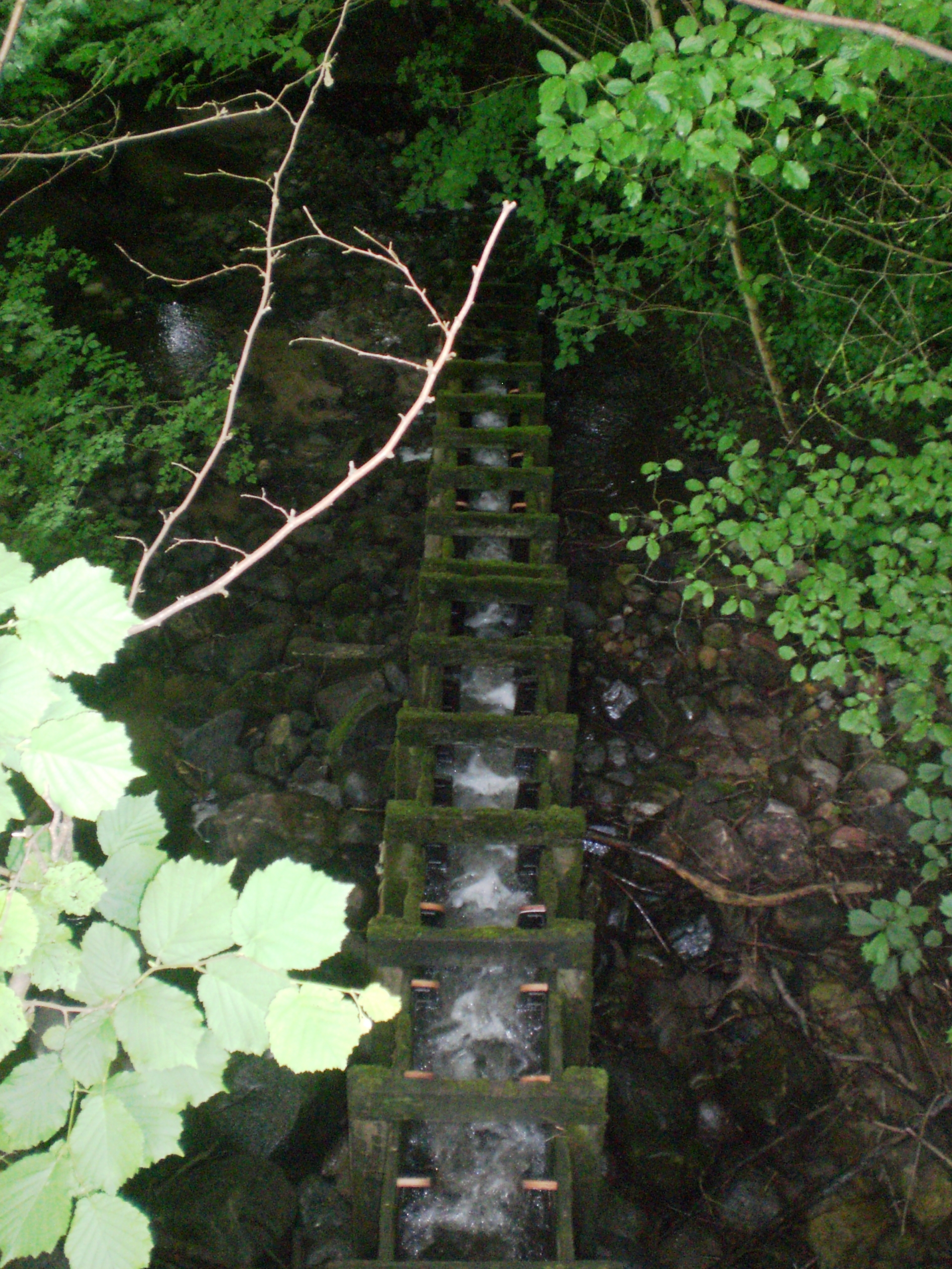 … wobei wir schon am Staudamm nicht weiterkamen, als die kleinsten Reiseteilnehmer die spannende „Wassertreppe“ entdeckten und sich fortan damit vergnügten, kleine Blätter und Stöckchen den Wasserfall hinunterschwimmen zu lassen.